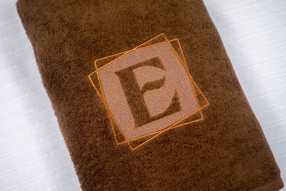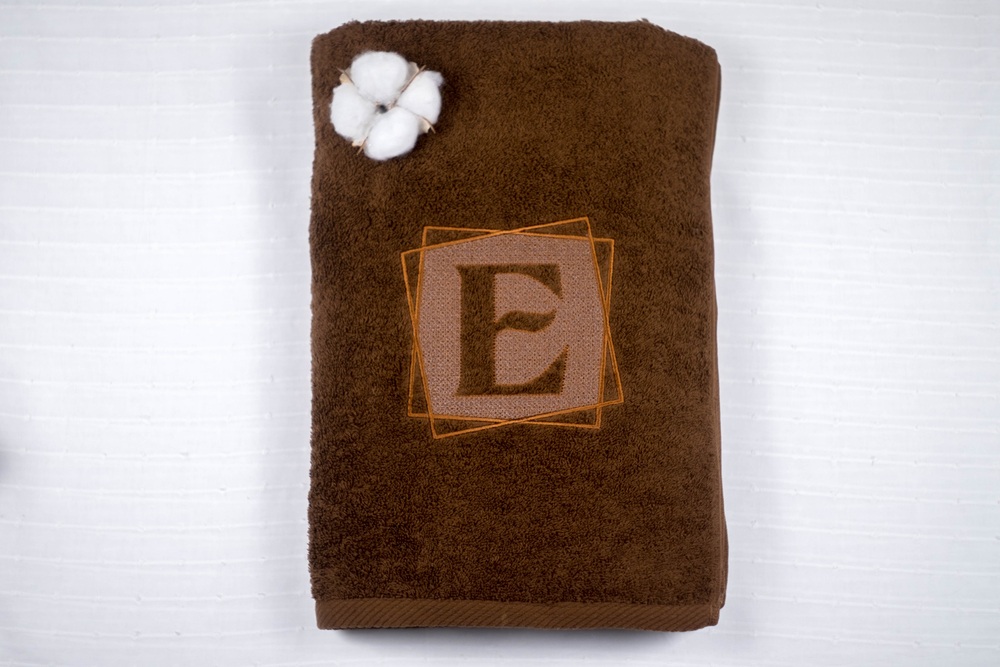 Choco Brown Towel – Square embossed monogram; Brown thread