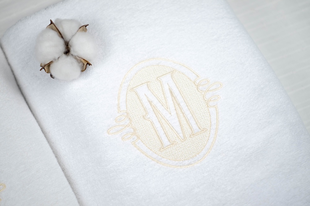 Embossed monogram our soft, super absorbent but not overly heavy hotel-grade towels made of 100% terry cloth cotton through embroidery.
